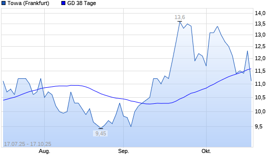 Mit dem Anstieg auf 12,30 EUR hat die Towa-Aktie am 16.10.2025 die 38-Tage-Linie nach oben gekreuzt.