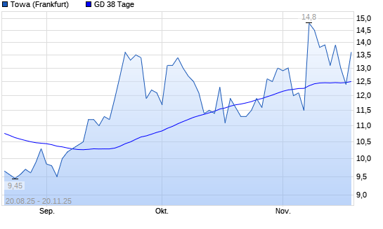 Mit dem Rücksetzer auf 12,40 EUR hat die Towa-Aktie am 19.11.2025 die 38-Tage-Linie nach unten gekreuzt.