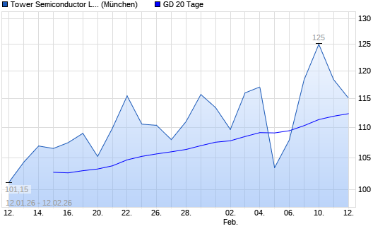 Mit dem Rücksetzer auf 111,00 EUR hat die Tower Semiconductor-Aktie am 11.02.2026 die 20-Tage-Linie nach unten gekreuzt.