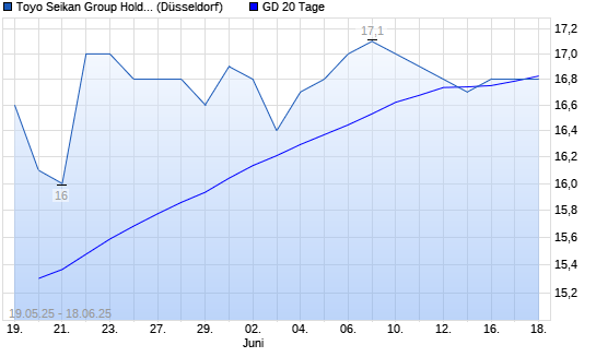 Mit dem Anstieg auf 17,00 EUR hat die Toyo Seikan Kaisha-Aktie am 17.06.2025 die 20-Tage-Linie nach oben gekreuzt.