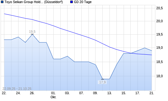 Mit dem Anstieg auf 18,90 EUR hat die Toyo Seikan Kaisha-Aktie am 20.10.2025 die 20-Tage-Linie nach oben gekreuzt.
