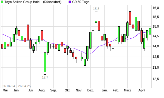 Mit dem Anstieg auf 15,00 EUR hat die Toyo Seikan Kaisha-Aktie am 25.04.2025 die 50-Tage-Linie nach oben gekreuzt.