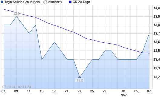 Mit dem Rücksetzer auf 13,60 EUR hat die Toyo Seikan Kaisha-Aktie am 06.11.2024 die 20-Tage-Linie nach unten gekreuzt.