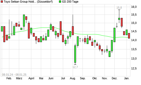 Mit dem Rücksetzer auf 14,20 EUR hat die Toyo Seikan Kaisha-Aktie am 07.01.2025 die 200-Tage-Linie nach unten gekreuzt.
