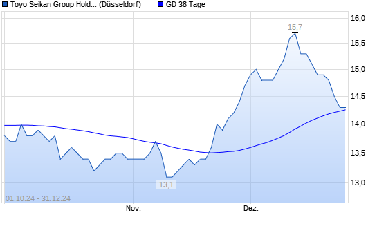 Mit dem Rücksetzer auf 14,40 EUR hat die Toyo Seikan Kaisha-Aktie am 30.12.2024 die 38-Tage-Linie nach unten gekreuzt.