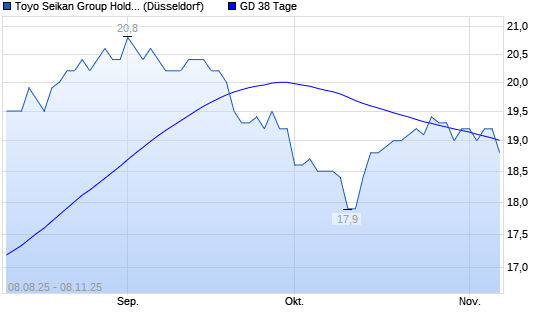 Mit dem Rücksetzer auf 18,90 EUR hat die Toyo Seikan Kaisha-Aktie am 07.11.2025 die 38-Tage-Linie nach unten gekreuzt.