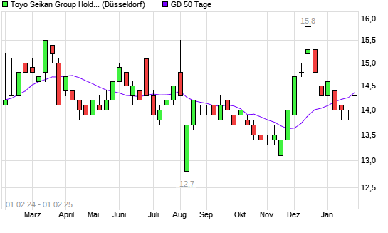 Mit dem Rücksetzer auf 14,50 EUR hat die Toyo Seikan Kaisha-Aktie am 31.01.2025 die 50-Tage-Linie nach unten gekreuzt.