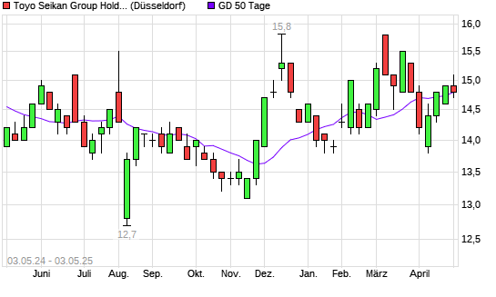 Mit dem Rücksetzer auf 14,90 EUR hat die Toyo Seikan Kaisha-Aktie am 02.05.2025 die 50-Tage-Linie nach unten gekreuzt.