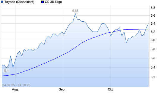 Mit dem Anstieg auf 6,50 EUR hat die Toyobo-Aktie am 23.10.2025 die 38-Tage-Linie nach oben gekreuzt.