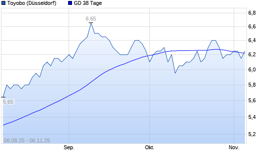 Mit dem Rücksetzer auf 6,25 EUR hat die Toyobo-Aktie am 05.11.2025 die 38-Tage-Linie nach unten gekreuzt.