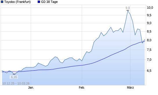 Mit dem Rücksetzer auf 7,85 EUR hat die Toyobo-Aktie am 09.03.2026 die 38-Tage-Linie nach unten gekreuzt.