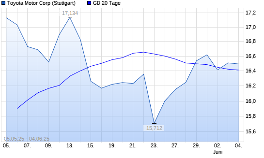 Mit dem Anstieg auf 16,68 EUR hat die Toyota Motor-Aktie am 03.06.2025 die 20-Tage-Linie nach oben gekreuzt.