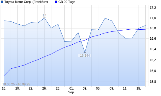 Mit dem Anstieg auf 16,80 EUR hat die Toyota Motor-Aktie am 15.09.2025 die 20-Tage-Linie nach oben gekreuzt.