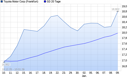Mit dem Anstieg auf 18,80 EUR hat die Toyota Motor-Aktie am 09.01.2026 die 20-Tage-Linie nach oben gekreuzt.