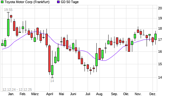 Mit dem Anstieg auf 17,15 EUR hat die Toyota Motor-Aktie am 11.12.2025 die 50-Tage-Linie nach oben gekreuzt.
