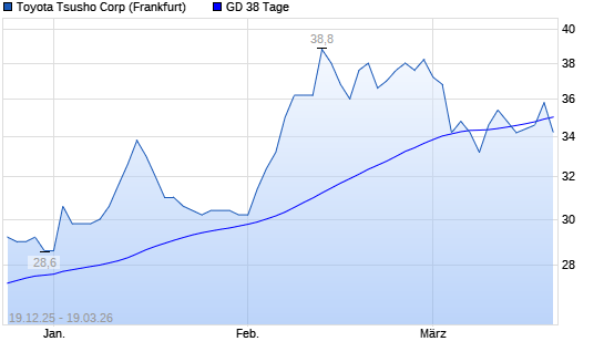 Mit dem Anstieg auf 35,80 EUR hat die Toyota Tsusho-Aktie am 18.03.2026 die 38-Tage-Linie nach oben gekreuzt.