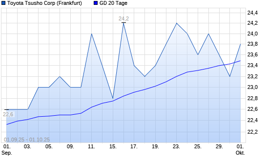 Mit dem Rücksetzer auf 23,20 EUR hat die Toyota Tsusho-Aktie am 30.09.2025 die 20-Tage-Linie nach unten gekreuzt.