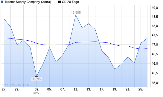 Mit dem Anstieg auf 46,40 EUR hat die Tractor Supply Company-Aktie am 26.11.2025 die 20-Tage-Linie nach oben gekreuzt.