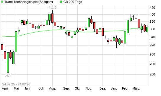 Mit dem Anstieg auf 363,70 EUR hat die Trane Technologies-Aktie am 23.03.2026 die 200-Tage-Linie nach oben gekreuzt.