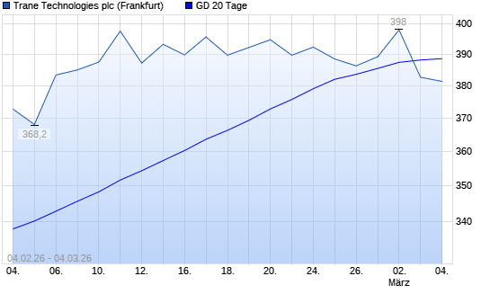Mit dem Rücksetzer auf 382,80 EUR hat die Trane Technologies-Aktie am 03.03.2026 die 20-Tage-Linie nach unten gekreuzt.