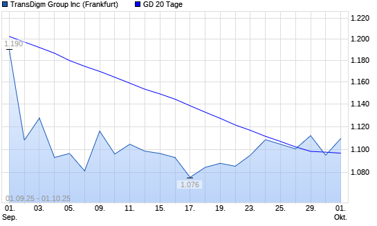 Mit dem Rücksetzer auf 1.095,00 EUR hat die TransDigm Group-Aktie am 30.09.2025 die 20-Tage-Linie nach unten gekreuzt.