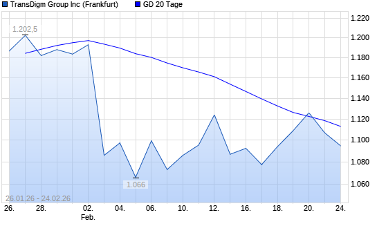 Mit dem Rücksetzer auf 1.107,00 EUR hat die TransDigm Group-Aktie am 23.02.2026 die 20-Tage-Linie nach unten gekreuzt.