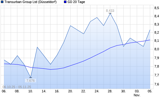 Mit dem Rücksetzer auf 8,00 EUR hat die Transurban Group-Aktie am 04.11.2025 die 20-Tage-Linie nach unten gekreuzt.