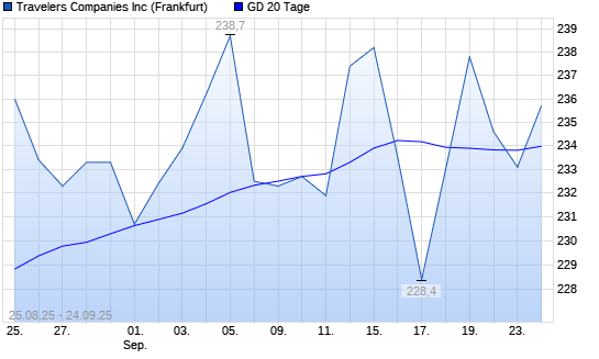 Mit dem Rücksetzer auf 233,10 EUR hat die Travelers Companies-Aktie am 23.09.2025 die 20-Tage-Linie nach unten gekreuzt.