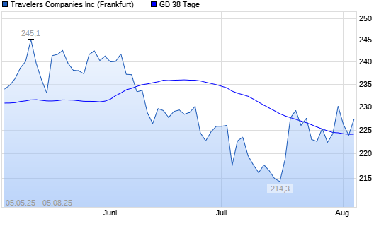 Mit dem Rücksetzer auf 223,90 EUR hat die Travelers Companies-Aktie am 04.08.2025 die 38-Tage-Linie nach unten gekreuzt.