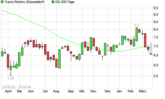 Mit dem Anstieg auf 7,00 EUR hat die Travis Perkins-Aktie am 18.03.2026 die 200-Tage-Linie nach oben gekreuzt.
