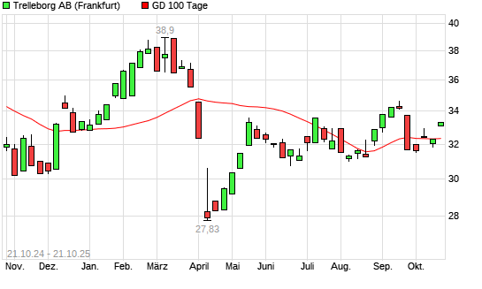 Mit dem Anstieg auf 33,08 EUR hat die Trelleborg-Aktie am 20.10.2025 die 100-Tage-Linie nach oben gekreuzt.