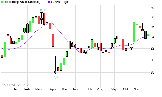 Mit dem Anstieg auf 34,23 EUR hat die Trelleborg-Aktie am 24.11.2025 die 50-Tage-Linie nach oben gekreuzt.