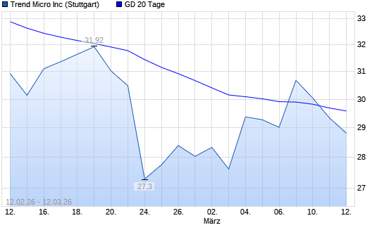 Mit dem Rücksetzer auf 29,36 EUR hat die Trend Micro-Aktie am 11.03.2026 die 20-Tage-Linie nach unten gekreuzt.