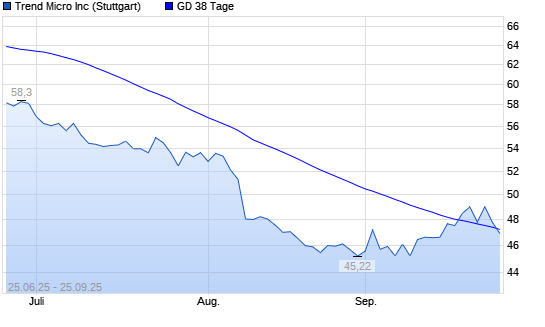 Mit dem Rücksetzer auf 47,20 EUR hat die Trend Micro-Aktie am 24.09.2025 die 38-Tage-Linie nach unten gekreuzt.
