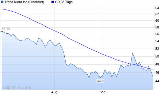 Mit dem Rücksetzer auf 46,46 EUR hat die Trend Micro-Aktie am 30.09.2025 die 38-Tage-Linie nach unten gekreuzt.