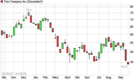 Mit dem Rücksetzer auf 43,49 EUR hat die Trex-Aktie (ISIN US89531P1057) am 23.09.2025 ein neues 12-Monats-Tief erreicht und damit den Kurs vom 22.09.2025 eingestellt.
