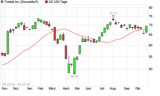Mit dem Anstieg auf 69,46 EUR hat die Trimble-Aktie am 23.10.2025 die 100-Tage-Linie nach oben gekreuzt.