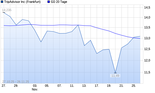 Mit dem Anstieg auf 13,05 EUR hat die TripAdvisor-Aktie am 25.11.2025 die 20-Tage-Linie nach oben gekreuzt.