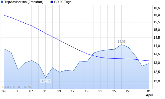 Mit dem Rücksetzer auf 13,01 EUR hat die TripAdvisor-Aktie am 31.03.2025 die 20-Tage-Linie nach unten gekreuzt.