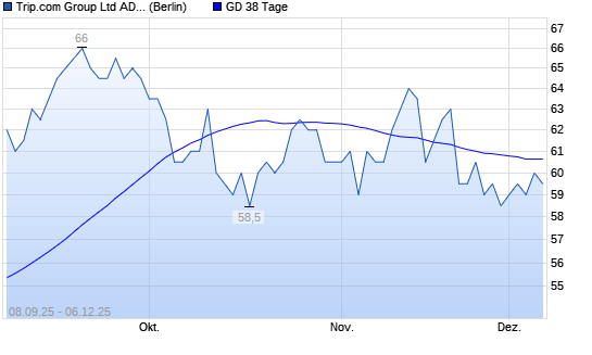 Mit dem Rücksetzer auf 60,50 EUR hat die Trip.com-Aktie am 05.12.2025 die 38-Tage-Linie nach unten gekreuzt.