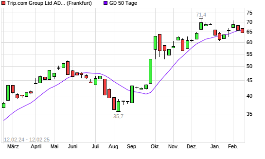 Mit dem Rücksetzer auf 64,80 EUR hat die Trip.com-Aktie am 11.02.2025 die 50-Tage-Linie nach unten gekreuzt.