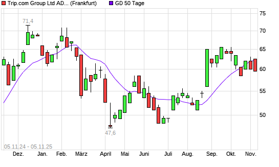Mit dem Rücksetzer auf 61,00 EUR hat die Trip.com-Aktie am 04.11.2025 die 50-Tage-Linie nach unten gekreuzt.