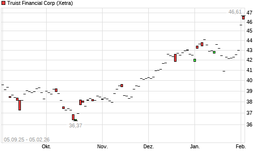 Mit dem Anstieg auf 45,49 EUR hat die Truist Financial-Aktie (ISIN US89832Q1094) am 04.02.2026 ein neues 6-Monats-Hoch erreicht und damit den Kurs vom 03.02.2026 eingestellt.