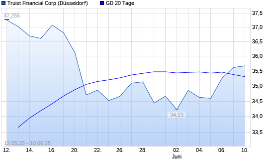 Mit dem Anstieg auf 35,32 EUR hat die Truist Financial-Aktie am 09.06.2025 die 20-Tage-Linie nach oben gekreuzt.