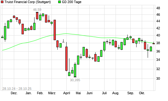 Mit dem Anstieg auf 38,25 EUR hat die Truist Financial-Aktie am 27.10.2025 die 200-Tage-Linie nach oben gekreuzt.