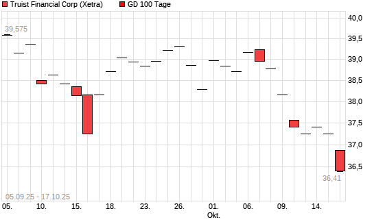 Mit dem Rücksetzer auf 36,85 EUR hat die Truist Financial-Aktie am 16.10.2025 die 100-Tage-Linie nach unten gekreuzt.