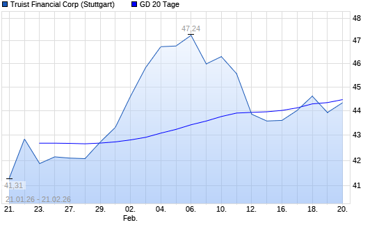 Mit dem Rücksetzer auf 43,72 EUR hat die Truist Financial-Aktie am 20.02.2026 die 20-Tage-Linie nach unten gekreuzt.