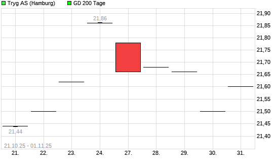 Mit dem Anstieg auf 21,50 EUR hat die Tryg A/S-Aktie am 31.10.2025 die 200-Tage-Linie nach oben gekreuzt.