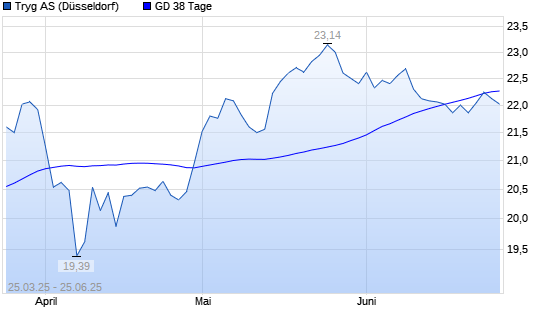 Mit dem Anstieg auf 22,64 EUR hat die Tryg A/S-Aktie am 24.06.2025 die 38-Tage-Linie nach oben gekreuzt.