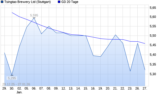 Mit dem Anstieg auf 5,46 EUR hat die Tsingtao Brewery-Aktie am 26.01.2026 die 20-Tage-Linie nach oben gekreuzt.